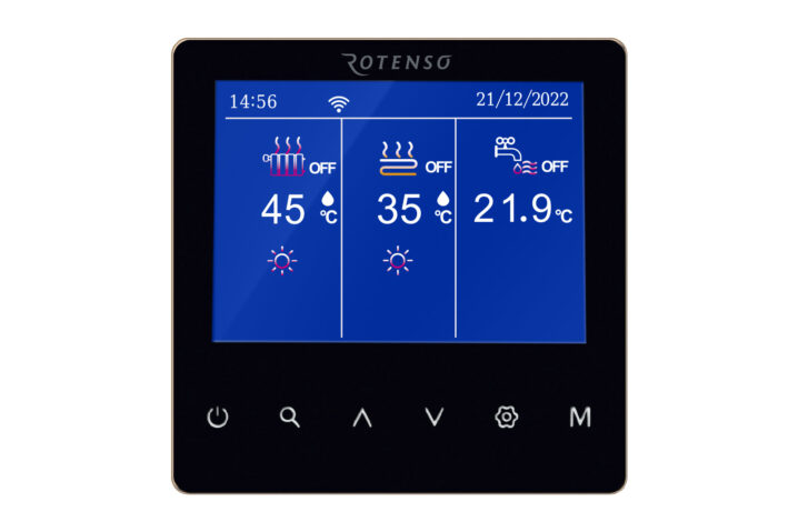 Rotenso Heatmi Split oferuje możliwość sterowania pompą zarówno z poziomu sterownika przewodowego jak również