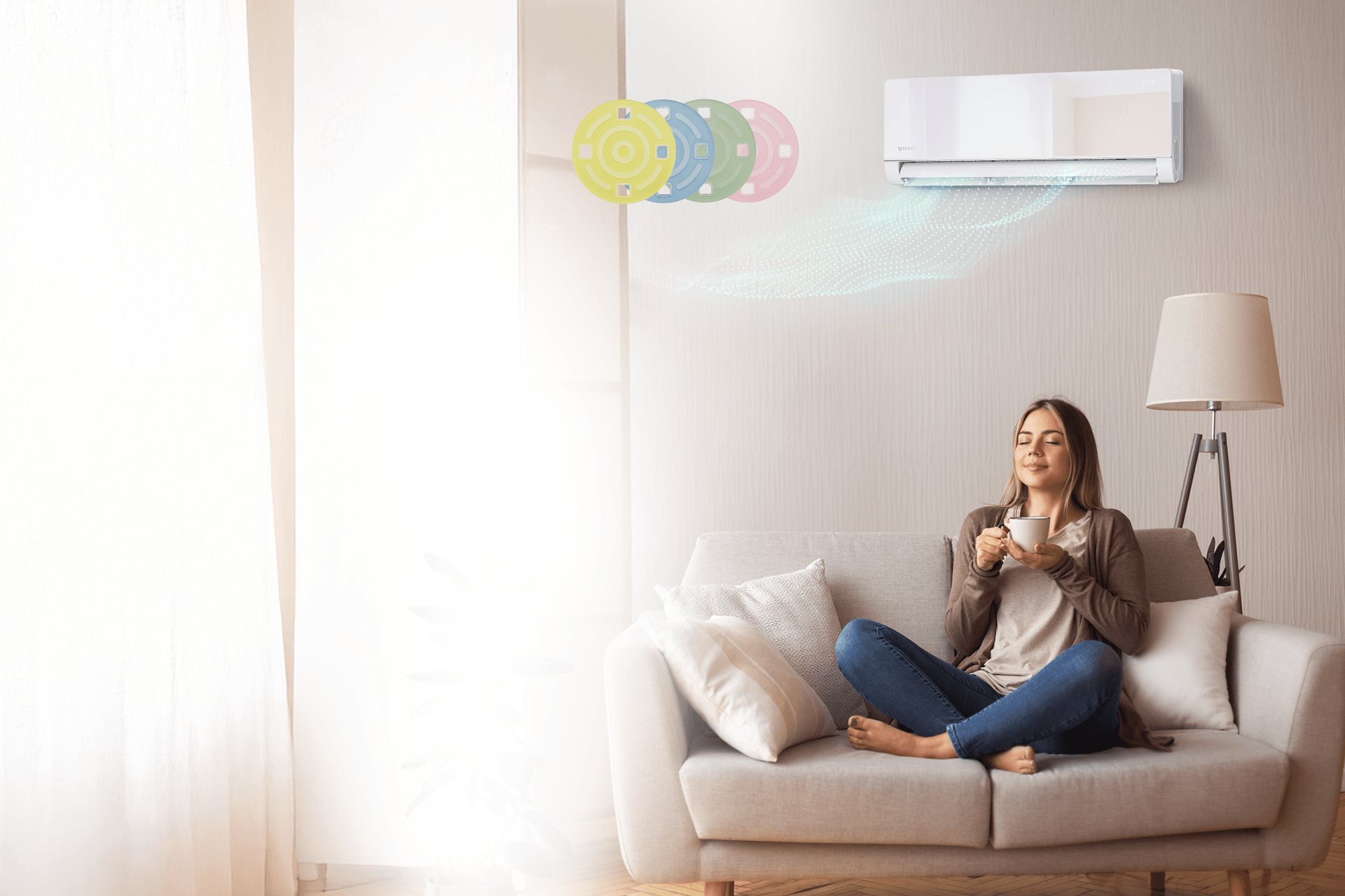 Zastosowanie technologii Windless pozwala rozproszyć powietrze w sposób delikatny i równomierny. Dzięki temu w każdym pomieszczeniu utrzymasz komfortową temperaturę bez odczuwalnych, nieprzyjemnych podmuchów.