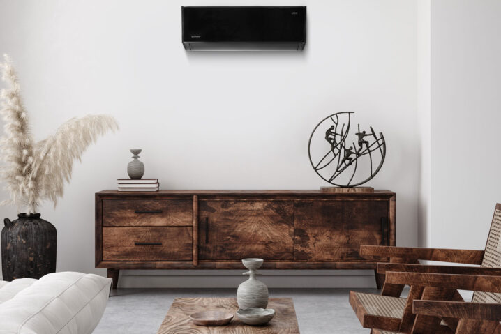 Minimalistyczna forma, głęboka czerń oraz ciekawy melanż faktur składają się na niezwykle elegancki design klimatyzatora.