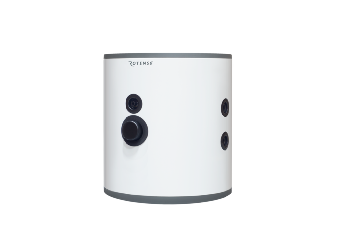 Zbiornik buforowy wspomaga pompę ciepła w wydajnej i stabilnej pracy, a zmagazynowana woda grzewcza zostanie użyta we właściwym momencie.
